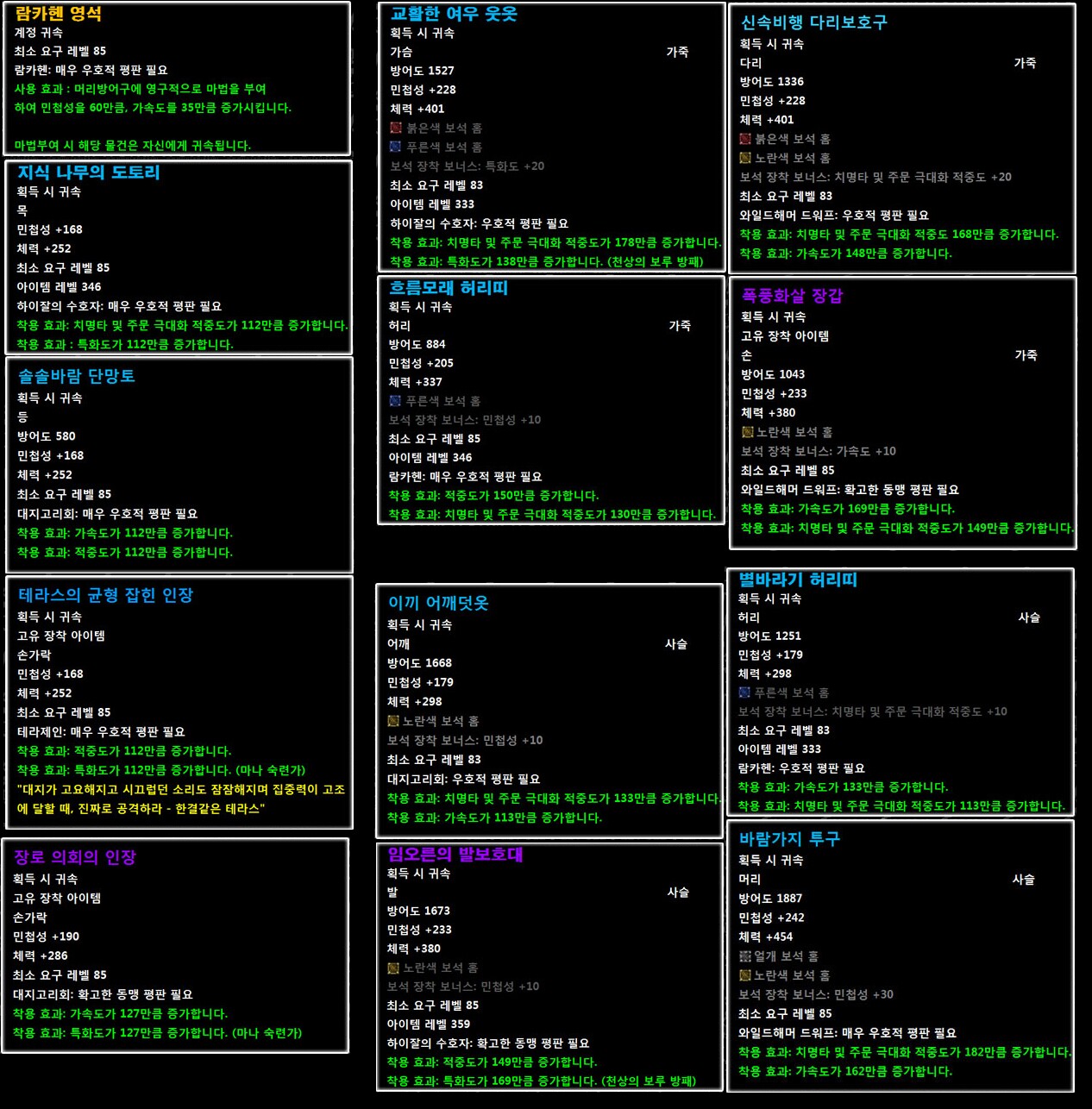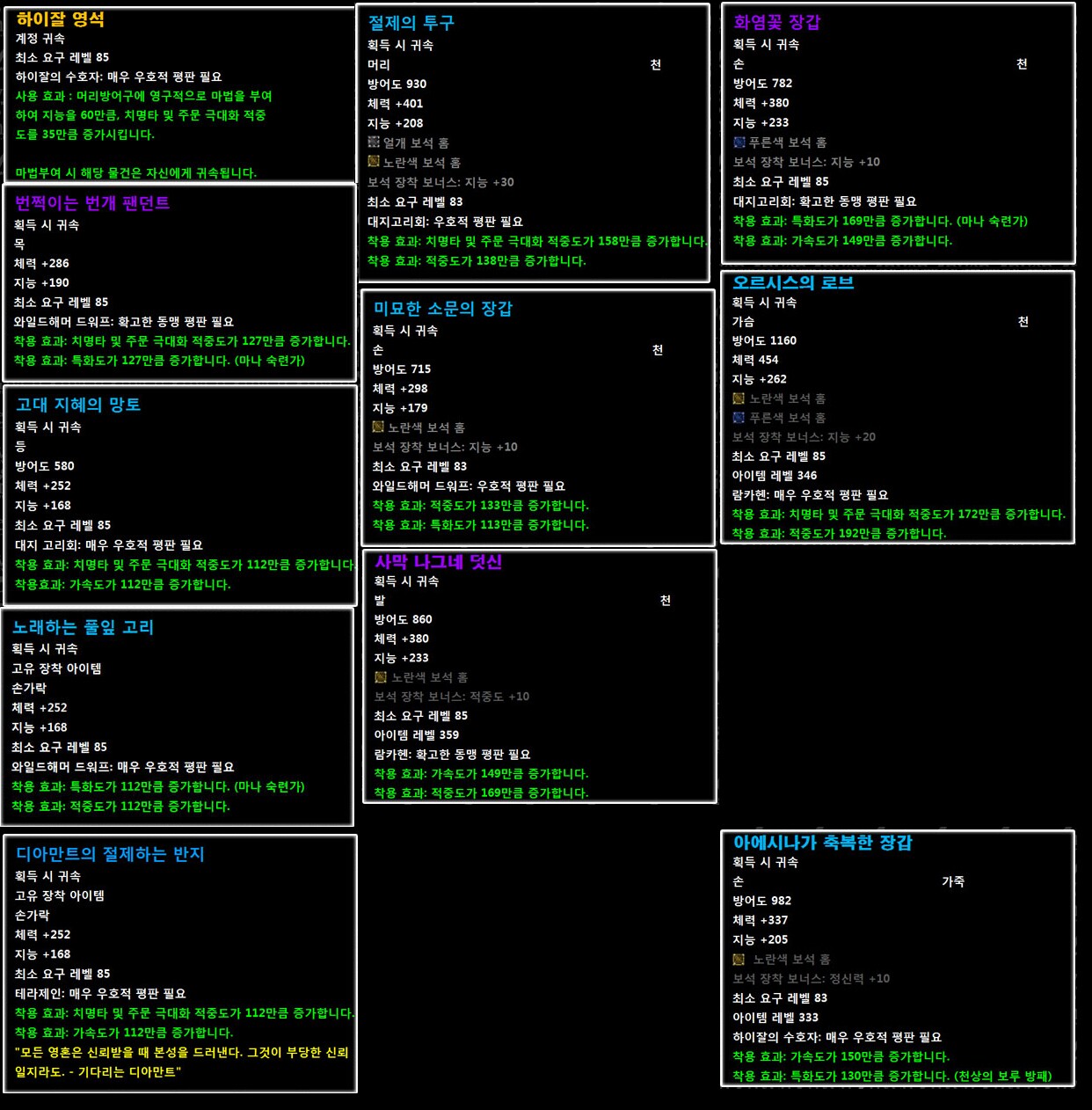 대격변 평판 장비 능력치별 그림으로 한방 정리
