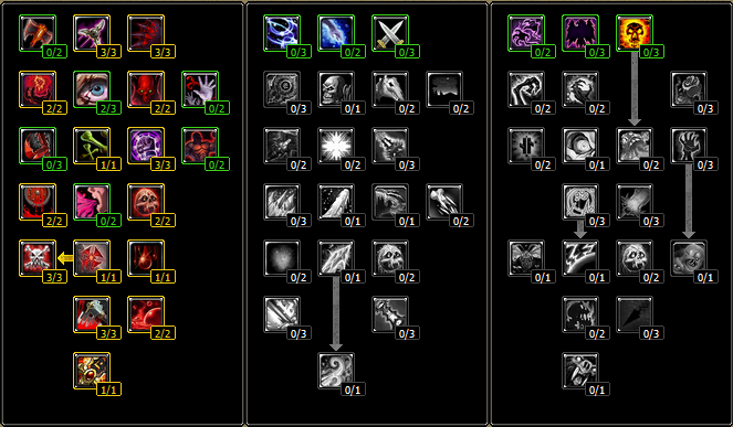 핏빛 열병 - 필수. 탱킹시 대미지 감소에 대해서 필요없다고 느끼시는 분들은 없을것으로 압니다. 전사와 기사, 드루에게도 이와 똑같은 특성이 존재하기 때문에 정공의 경우 한명을 정해서 유지해도 무방합니다. 하지만 막공을 다니신다면 찍고 넴드 탱시 유지하는 것이 좋습니다.
