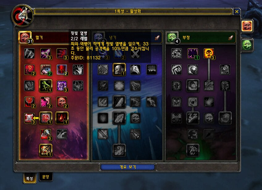 유행성병균을 0포인트로 하고 핏빛열병 특성을 보시게 되면
