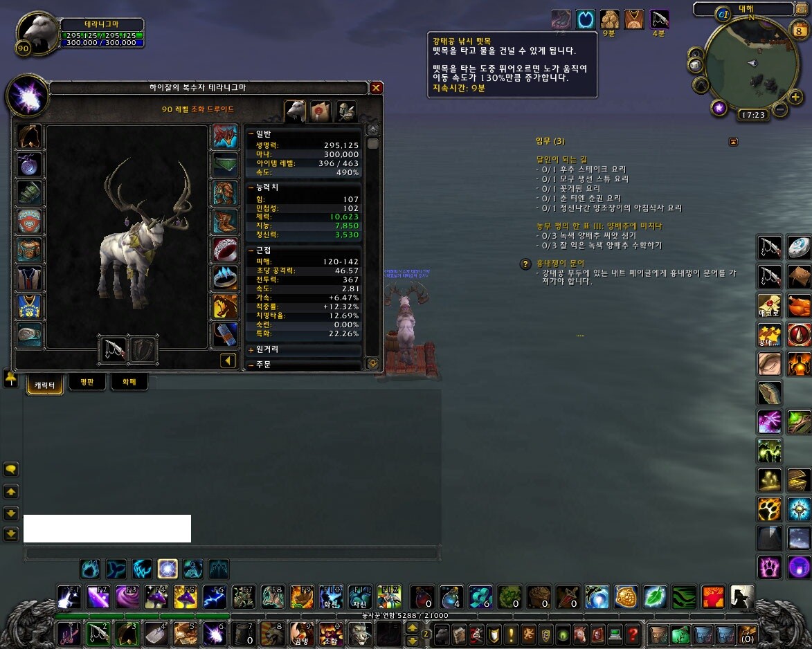 수면걷기 비약없이 낚시할수 있는 평판 보상템![]() 네, 강태공 연합 매우 우호를 찍으면 강태공 낚시 뗏목 을 구입할 수 있습니다. 이 아이템이 바로 수면걷기 비약 없이도 물 위에서 낚시를 할 수 있게 해주는 물건입니다. ![]() 사용하면 다음과 같은 버프가 걸립니다. 점프 키(기본 단축키는 스페이스바)를 연타하면 속도가 계속 늘어나는데요. 캐릭터 창에 표시되는 속도는 230~270퍼까지 나옵니다. 물론 내버려두면 속도가 계속 떨어지고 최고속도 270을 유지하기는 힘드니 실질적으로는 250퍼 이속이라고 생각하시면 됩니다. 그리고 이 효과는 탈것을 타면 풀립니다. 또한 탈것을 탄 상태로 사용하려고 하면 시전이 안됩니다. ![]() 판다리아 이외의 지역에서도 사용할 수 있습니다. 사진에 보이는 지역은 다크문 섬 입니다. 이렇게 물 위에서도 안심하고 낚시를 할 수 있습니다. 그리고 이게 끝이 아닙니다. ![]() 탈것 탑승시 뗏목 효과가 사라지지만 드루이드의 변신에는 해당되지 않습니다. 물론 낚시를 하면 순록 변신이 풀리지만 순록 상태로 이동이 가능하고 수정 : 쇄도의 표효는 쓸 수는 있는데 이속 증가 효과가 적용되지 않네요. 늑인 종특은 됩니다. ![]() 저는 종족이 늑인이라서 암흑질주 켜고 점프키 연타해봤습니다. 최고속도가 522%까지 나올 때도 있습니다. 낚시 열심히 하셔서 뗏목 하나 장만하세요!
