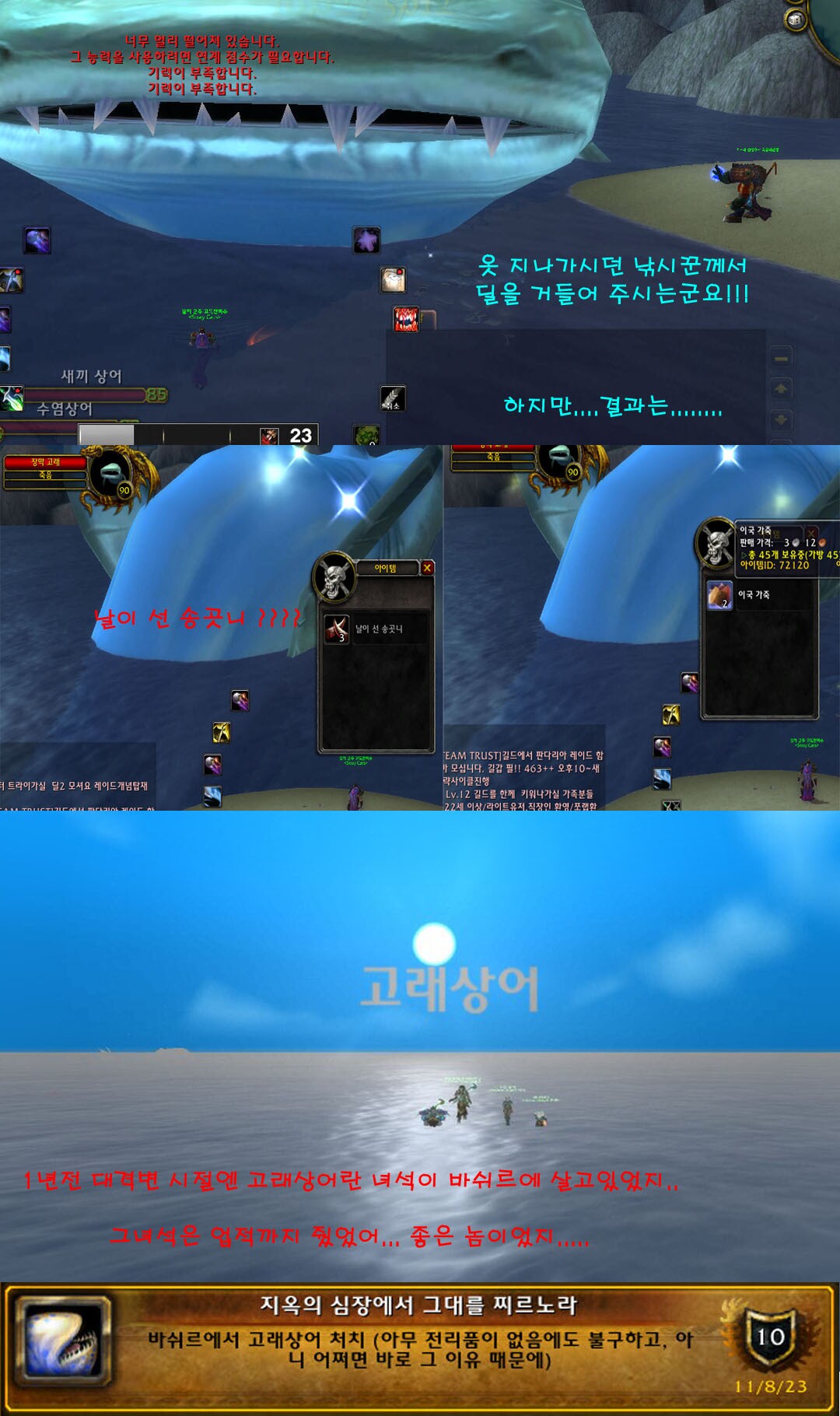오늘은 다름이 아니라 판다리아 외각 바다에서 떠도는 장막고래 솔플에 대한 이야기입니다.
