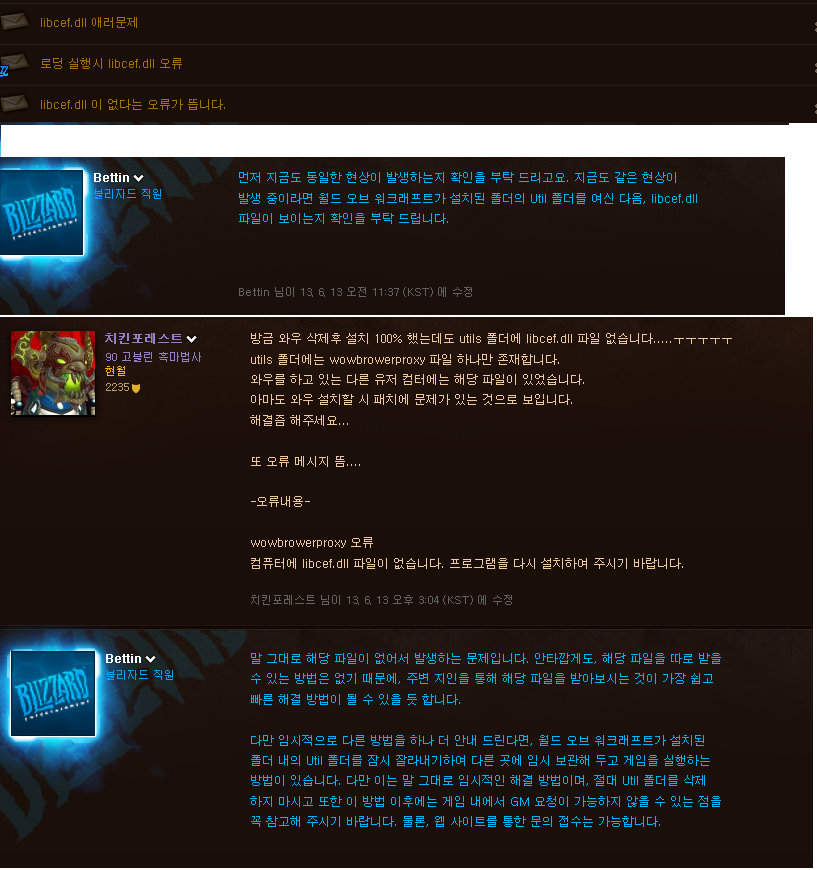 libcef.dll 를 와우 폴더내에 집어넣으면 된다는 gm의 말이있었지만
