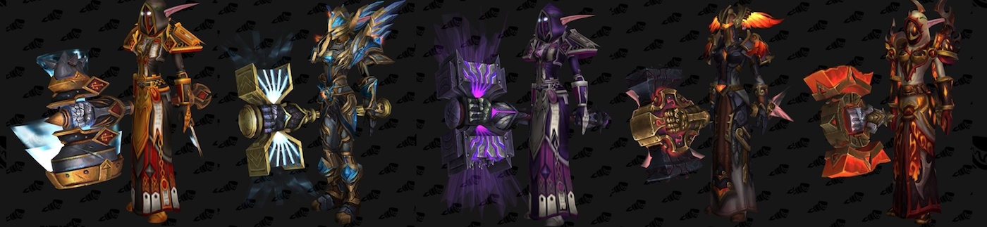 정의의 불꽃 +티어 2 / 순정 + 판다 도전모드 / 강화된 + 티어 2 던전룩 / 수호자의 심판 + 티어 16/ 무덤 수호자 +티어 12.