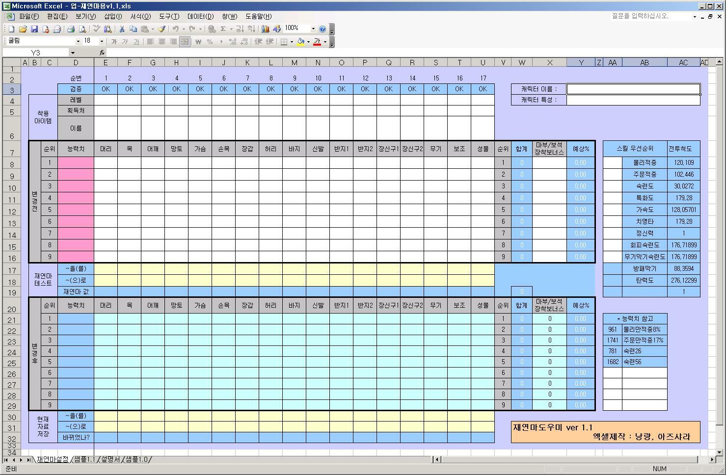 1. 엑셀파일 우측 상단에 있는 스킬 우선순위에 각각 필요한 순위를 입력합니다.