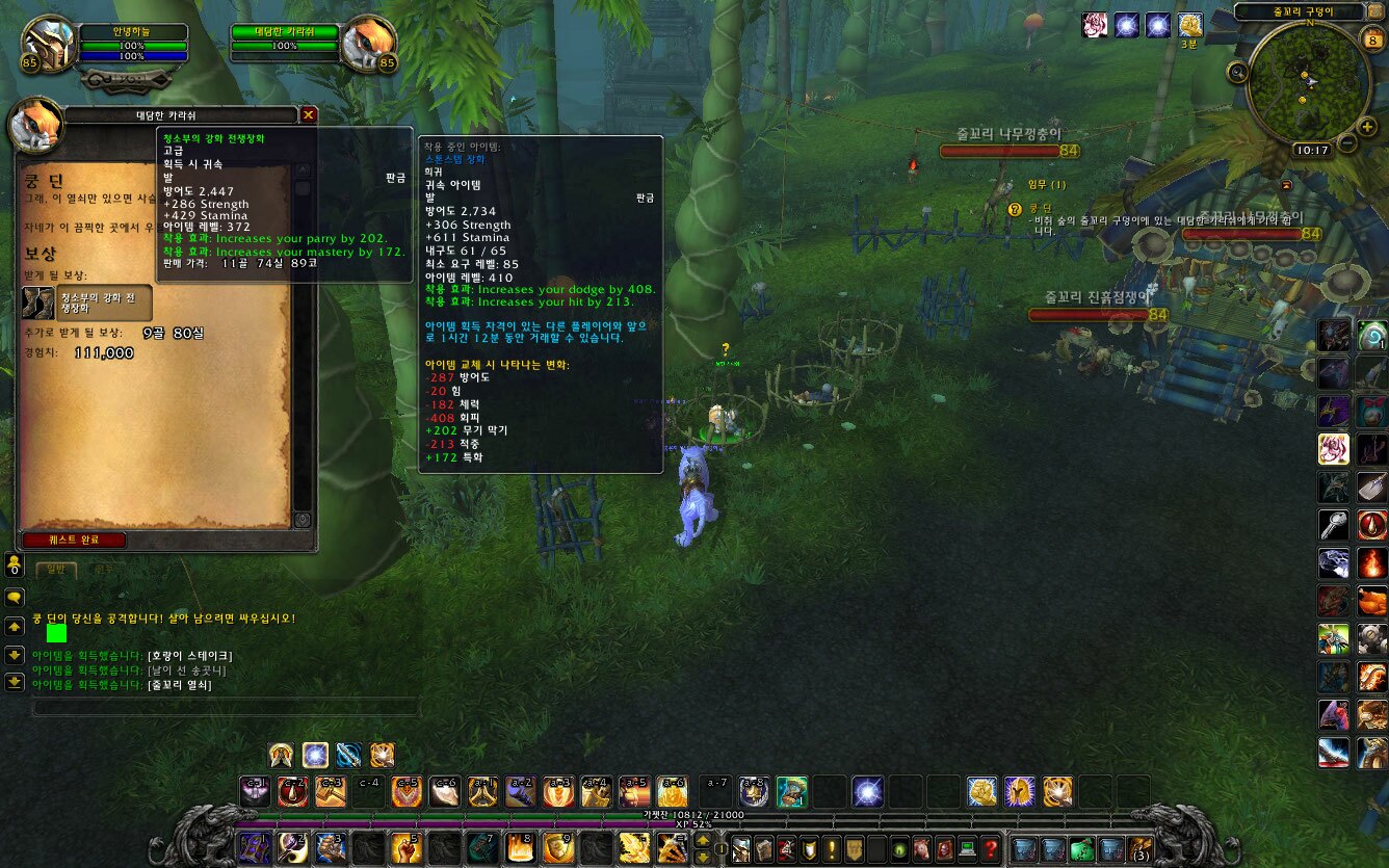 3. 첫 지역의 퀘템은 372/ 85레벨 인스인 옥룡사와 양조장 템은 410