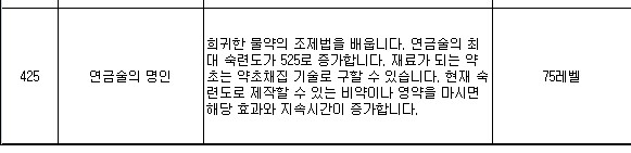 연금술 425숙을찍으면 연금술의 명인 이란것을 배울수 있습니다 (75레벨 이상)