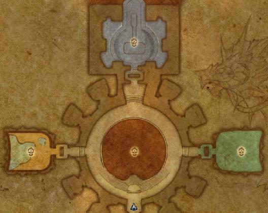 푸른 시약 진형 - 네모: 메인 탱커 및 근접 딜러 - 엑스 및 다이아: 원거리 본진으로 나눠서 섭니다. - 역삼: 서브 탱커의 위치로 쫄을 대기시키는 위치 - 화살표: 쫄이 나오는 방향