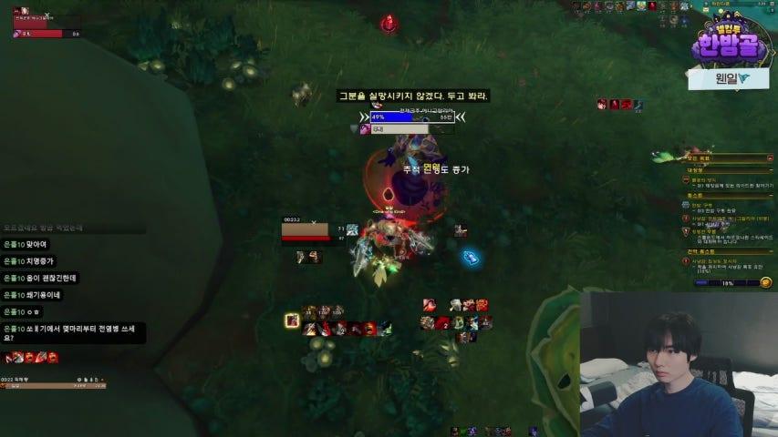 ●나무변신후, 대규모 싸움에선 피생과 재생을 적절히 사용, 소수의 인원이 계속 다수에게 점사당하면 재생연타 맨 첫 교전에서 사람들 피통이 왓다리 갓다리 하면 과감하게 나무변신을 해야하고요 노래방 흐름이 첫 교전 대규모싸움에서 승리하는 쪽이 이후 경기를 좀 수월하게 풀어갑니다. 한 6~70% 확률로요 이게 첫교전에서 이긴쪽이 힘쌈이 세서 경기를 수월하게 풀어간다...는 개념도 있지만 첫교전에서 힘쌈이 세든 아니든 패배한 쪽이, 살아있는 녀석들과 죽은 녀석들이 계속 따로 놀게 되어서 힘들이 쉽게 안모아지거든요. 이걸 잘 이해하는 팀은...첫 교전에서 이긴후 계속 지도보면서 뭉치면서 싸우는데 이게 '노래방 개념이 좋은 것' 중 하나입니다. 첫교전에서 승리한 후 우리는 계속 뭉치면서 힘을 극대화시키고 상대는 부활자와 살아있는 녀석들 따로놀때 계속 점사로 죽이면서 힘을 못뭉치게 하고, 상대 동선을 차단시켜요.