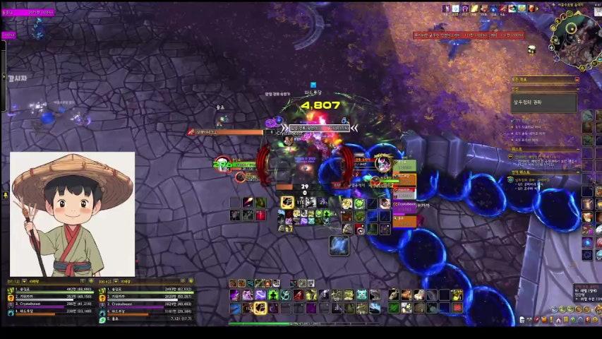 - 조건은 크릭시스앞의 문지기 3인방은 남긴채로 크릭시스만 죽이는 겁니다. - 냥꾼과 주술사가 있다면 도움이 됩니다. - 파티원중 1분이 미끼가 되어 2무리를 풀링해서 입구쪽으로 대리고 갑니다. - 파티에 냥꾼이 있다면 눈속으로 도운을 주면 굿! - 2무리가 지나가는 자리에 속박토템 + 냉덫 지원 ㄱㄱ - 2문지기가 낚인 사이에 탱커는 나머지 1무리 + 크릭시스를 멀티탱을 합니다. - 탱커가 탱킹하는동안 딜러는 크릭시스 폭딜 // (* 크릭시스 잡고나서는 어쩔 수 없이 전멸해야 합니다 -ㅅ-)