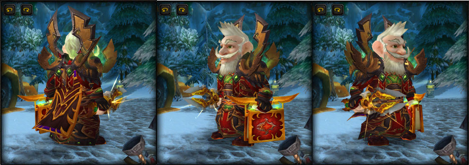 주무기 : 계시의 십자검(태양샘 킬제덴), 야만적인 검투사의 단도(투기장 4시즌 명점탬 스톰에서 구입가능)