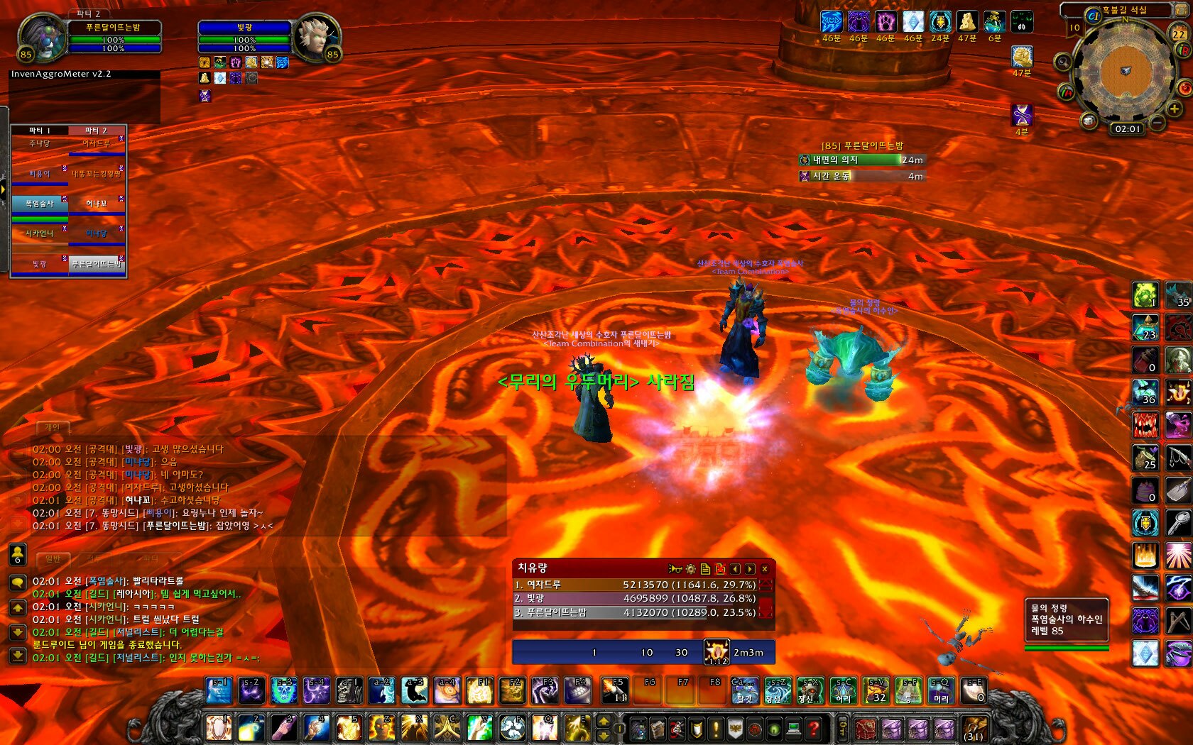 용암을 밟으면서 소생, 보호막을 걸고 점프. 내집-상치 위주로 힐을 합니다.