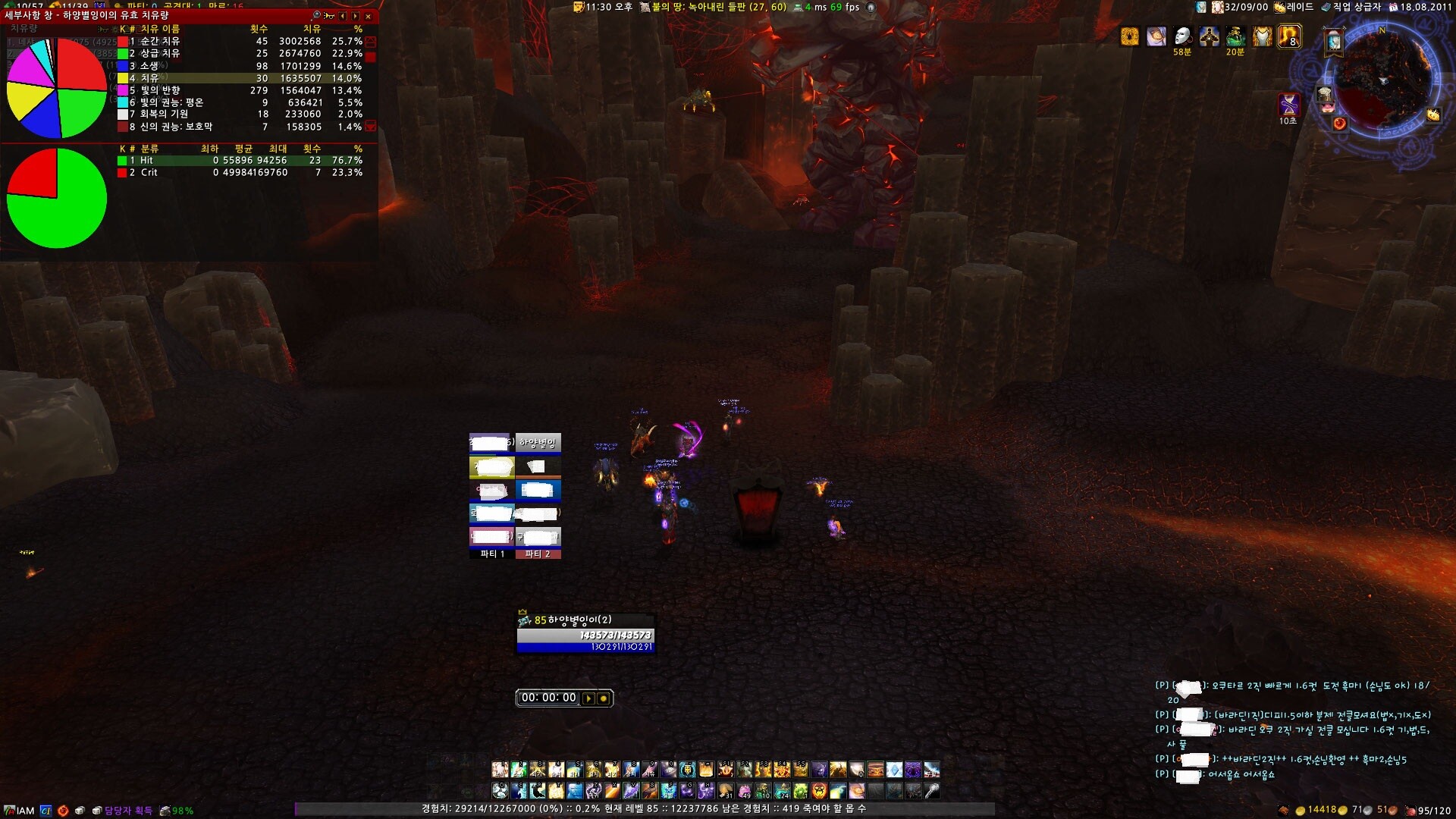 다음 법사+냥꾼은 데미지 감소가 되지 않기 때문에 소생-보막-치유-회기-순치-순치-상치-순치-순치-상치-보막 12~13중첩까지 이런 사이클의 힐을 마구 뿌려주세요. 법사 냥꾼보고 빛샘도 먹으라고 합니다.