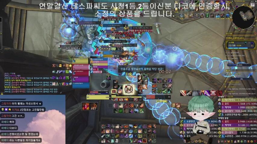 또한 치유의 기원은 오버힐이 없고, 당장 누군가가 급한 힐이 필요없다는 판단 하에 쓰는 게 좋습니다. 아래 힐 내역 중 왕노 21단에서 치유의 기원의 비중이 꽤 큰 편인데 이는 해당 주간이 [폭, 파, 변]이라서 비중이 많은걸 고려하셔야 합니다. 파열이 아니라면 고단일수록 치유의 기원을 쓸 여유가 없어집니다. 아제 특성인 '꿰뚫는 광채'가 3개라면 치유의 기원과 순간 치유의 HPS, MPS는 거의 비슷합니다. 마나효율을 최대한 생각해야하는 네임드가 아닌 이상 비록 손가락은 아프겠지만 빠른 템포인 순간 치유가 안정적인 면에서 훨씬 좋습니다.