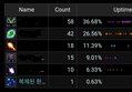 쐐기 회드 니야의 활기 업타임티르너 15단에서.. 전체 업타임은 90.6% (144회) ![]()