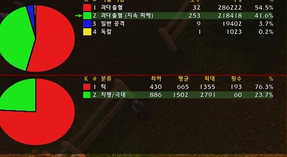 과다 문양의 효용성...눈호랑이님이 올리신 글 보고 써봅니다. ![]() 과다 툴팁에 직접공격의 40%에 해당하는 피해를 준다 되어있어서 별로 안좋다고 생각했는데요... ![]() 실질 적용률은 약 70~80% 정도인듯하네요... 원래 계산하던것을 조금 낮게봐서 과다 직접 데미지의 40% 정도로 계산했는데.. 그래서 약하다고 생각하고 있었는데; 이게 크리가 터지면 과다 크리 터진 데미지의 40%가 들어가는거라서 기대공이 꽤나 높아집니다. 또한 크리가 터지지 않은 데미지라 해도 그 상태에서 도트에만 크리가 터질수도 있기 때문에 ![]() 데미지 폭이 매우 큽니다. 최하데미지는 과다가 크리 안터진거 + 최소 데미지고요. 최대 데미지는 과다 최대 데미지로 때린게 크리 터진거인듯 하네요. 과다 도트 크리 터진게 크리 터지면 약 2700 이상까지 들어가는걸로 봐서... 과다 크리만 잘 터져주면 효율성이 꽤나 높겠군요... 개인적으로는 고 치명타 세팅으로 가면 효율성이 더욱 높아질것이라 생각됩니다. 게다가 저 스샷의 수치는 실험을 위해 과다의 출혈이 끝나면 다시 넣은거라 과다 데미지가 출혈로 받는 16% 추가데미지를 안받은 상태고요. 파열 유지하면서 넣으면 더욱 올라갈듯 싶습니다. 현재 제가 기습 크리가 출혈 유지에서 허수에 2만 3천이 터지는데 터지는데 과다 크리가 18000 조금 넘게 터지네요 평균적으로... 그러면 기습의 기대 공격력은 제 노버프크리 33% + 특성보정 30% = 크리 63%를 합해서 대략 기대 공격력 19000 가량. 기습의 기력 소모 약 37. (문양으로 인해 크리가 터져주면 기력 다시 5 회복) 기력 대비 공격력 - 513 과다는 따로 특성 보정이 없으니 크리율 33% = 기대 공격력 12000 + 도트 기대 공격력 = 과다의 공격력 x 40% x 크리 33%가 다시 과다 도트에 터질 수 있으니 과다가 크리가 안터졌다 가정했을때 = 4800 과다 크리 터졌을시 도트 기대 공격력 - 9600 총합 평균 과다 도트 기대 공격력 -6400 여기서 과다 버프로 30% 추가 - 8320 총합 과다 기대공격력 20320 과다의 기력 소모 = 29. 기력 대비 공격력 = 700.7 약 24초마다 한번씩 넣어줄경우 확실히 기습보다 이익이네요. 게다가 치명타율이 올라갈수록 기대 공격력은 기습보다도 과다가 더 크게 올라가네요. 지금 33%에서 행렬이 터져주면 40% 이상. 풀버프 다 받으면 풀버프시 오르는 치타는 약 2.5%. 상당하군요... 이거 실험 과다 30회 전에 총합 50회정도 더 실험해 봤었고요, 그때도 비슷하게 나왔습니다.... 의외로 과다 문양의 기대 디피가 높겠군요... 눈호랑이님의 글 보고 생각나서 적어봅니다. p.s 이 수치는 약포 디벞 걸어놓고 쓰면 차이가 더 커집니다. 한번 걸린 디버프는 약점포착이 없어져도 데미지는 그대로 들어가서... 또한 그 외에도 네임드 상황에 따라 타이밍 맞춰서 넣어주면 더 좋겠지요. p.s 2그래도 과다만 계속 쓰는거보단 기습 쓰는게 압도적 이익입니다... () |