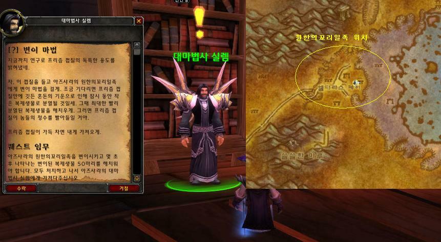 은근히 많은 마법사 들이 잘 모르는 변이 중에 하나이다. 이 변이책을 얻기 위해서는 퀘스트를 수행해야한다. 일단 굉장히 쉽다. 퀘스트 중에서, 칼림도어 지역-> 아즈샤라 지역으로 날라가야한다. 사나스 림요는 좌표(28,50) 위치에 있다. 여기에서 사나스 림요 npc가 주는 [사나스의 스승] 이란 퀘스트를 수행하도록하자. 다음은 퀘스트 공략 법이다. 첫번째 퀘스트! [52] 사나스의 스승 대마법사 실렘의 하인, 사나스 림요는 대마법사 실렘이 있는 곳으로 보내주는 비용으로 온전한 히포그리프의 깃털 2개를 요구한다.