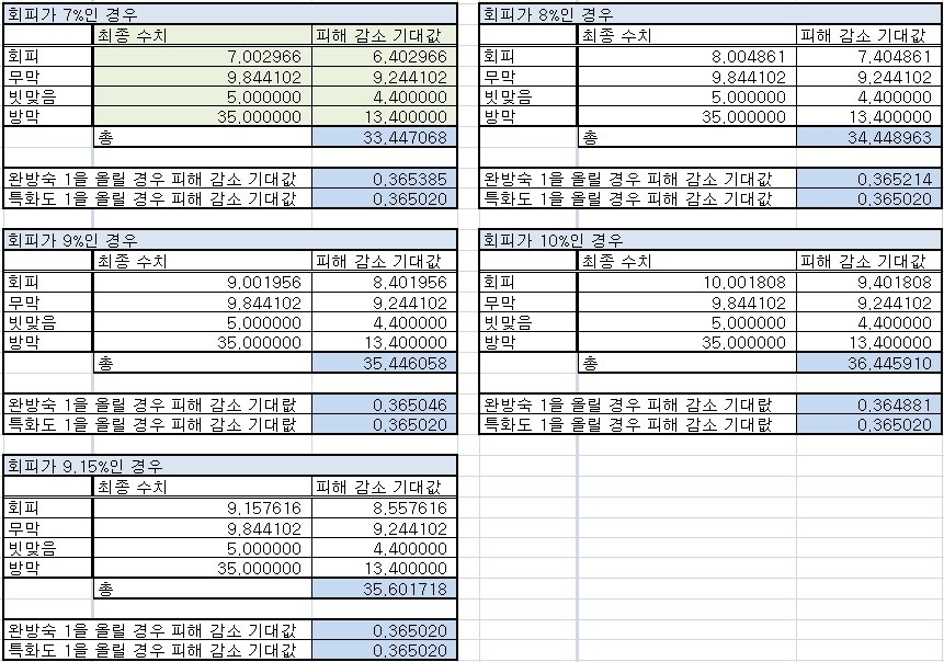 피해 감소 기대값의 관점에서 본 완방과 특화도완방과 특화도에 대한 비교를 하셔서 이렇게 글을 씁니다.