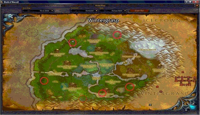 사진과 설명된 정보에는 굵은 붉은색의 원이 그려진 지역에서 로크나하크가 출현하다고 하는데 남쪽 차원문 근처의 지역에서도