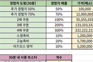 사냥경험치 BM 효율 시트 (메카베리, 모멘텀 등 포함)[36]