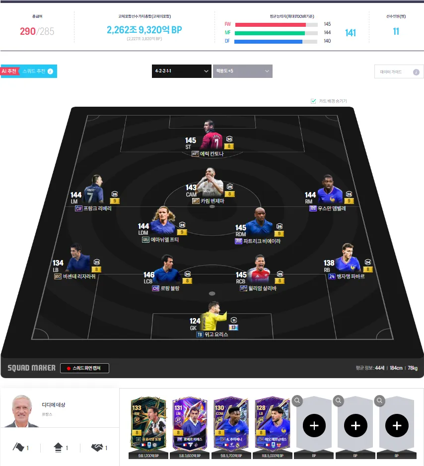 모든 포지션에 밸런스있게 급여와 성능을 투자(센백의 경우 저급여 고강 사용)