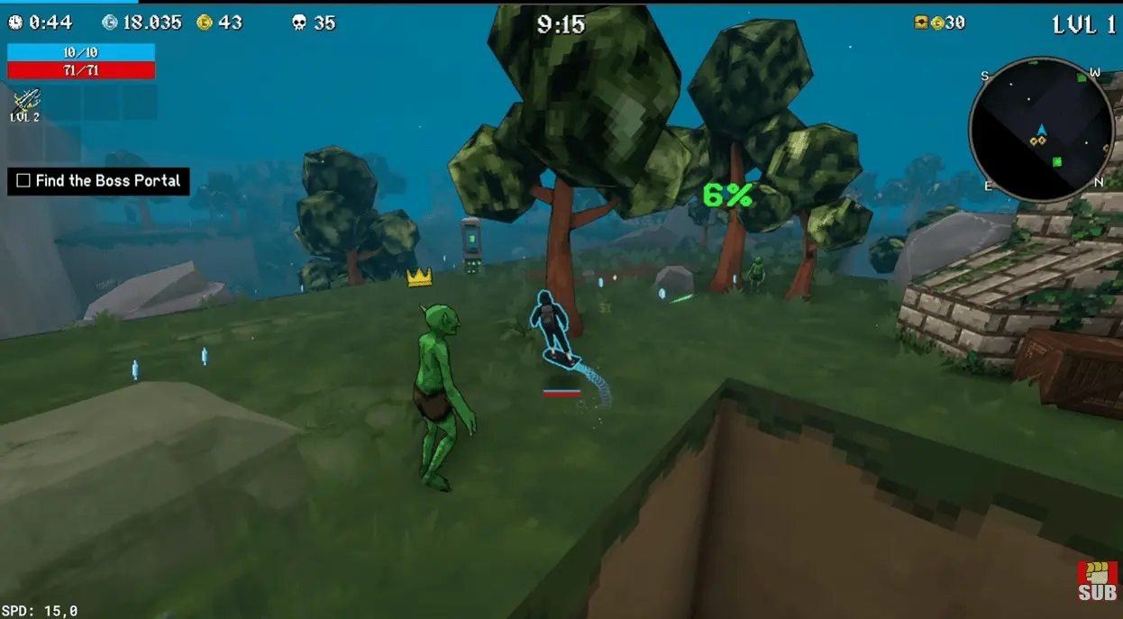 메가봉크는 여기서 한가지 변주를 시도합니다. 메가봉크는 많은 로그라이크 게임들이 따르는 문법인 2D 픽셀 화면을 3D 그래픽으로 전환했습니다. 덕분에 2D에서는 없는 요소가 생겼습니다. 바로 Z축에서 다가오는 적들입니다.