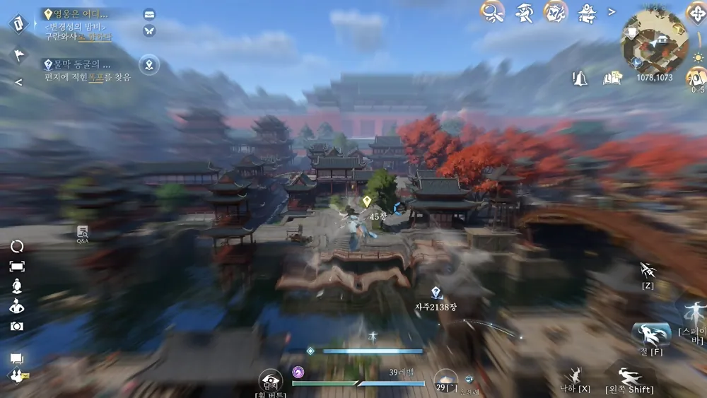 이동 시스템 또한 무협의 낭만이 가득합니다. 말을 타고 강산을 누비는 것은 물론이고, 심도 있는 경공 시스템을 통해 강호를 자유롭게 탐험할 수 있습니다. 경공만을 위한 별도의 스킬 트리가 존재하며, 공중에서 어떤 조작을 하느냐에 따라 모션도 변화하게 되죠. 수상보행이나 등반은 물론이고, 검과 몸이 하나가 되어 순식간에 돌진하는 '승영검'을 통해 보다 역동적인 경공도 가능합니다. 단순한 이동 수단이 아닌 무협인의 정체성 그 자체인 만큼, 역수한은 이를 게임 메커닉으로 완벽히 구현해 냈습니다.
