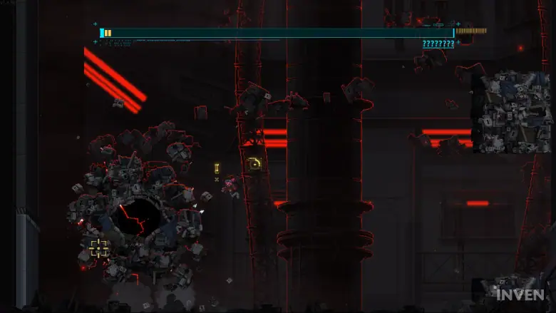 특히 마지막 보스전의 경우, 확실히 이런 공중전의 묘미를 제대로 느낄 수 있었는데요. 무작위로 생성된 후 상승하는 오브젝트, 일반 적들을 타고 다니며 보스의 가장자리를 공격하고, 이를 통해 바닥에서 무작위로 생성되는 미사일을 피하며 플레이하는 게 가능했습니다.